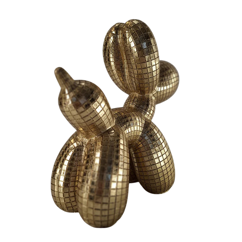 De goudkleurige afwerking sluit naadloos aan bij de huidige trend waarin metallic accenten warmte en luxe toevoegen aan strakke, moderne ruimtes. Het mooie? De Disco Balloon Dog straalt ook zonder spotlight – maar als je ’m onder een lamp plaatst, vangt hij net genoeg licht om subtiel de aandacht te trekken.