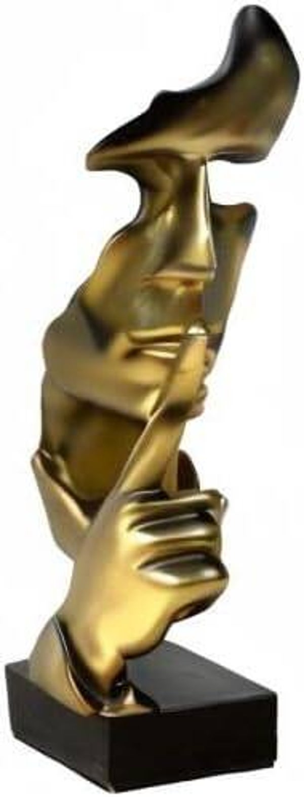 Silence is Gold Sculptuur – Modern Abstract Beeld met Gouden Gezicht op Zwarte Sokkel – Decoratief Figuur voor Interieur – 27 cm